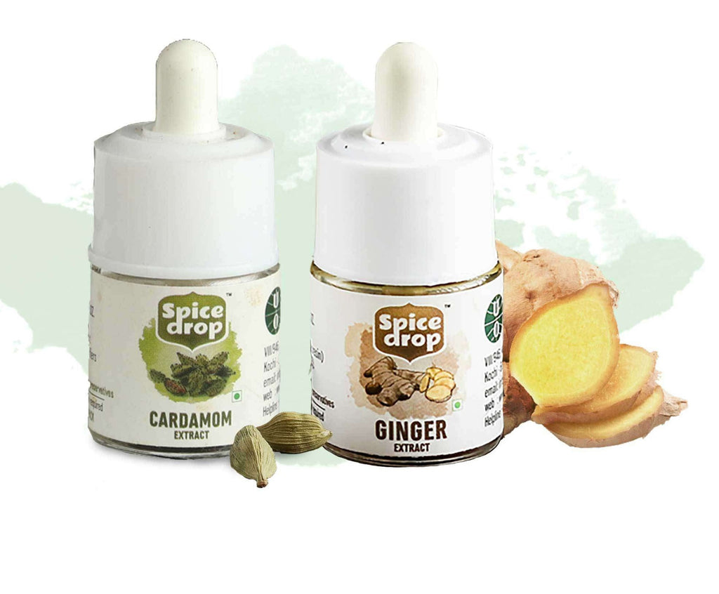 This combo contains 1 bottle each of 5 ml Cardamom and Ginger Spice Drop.